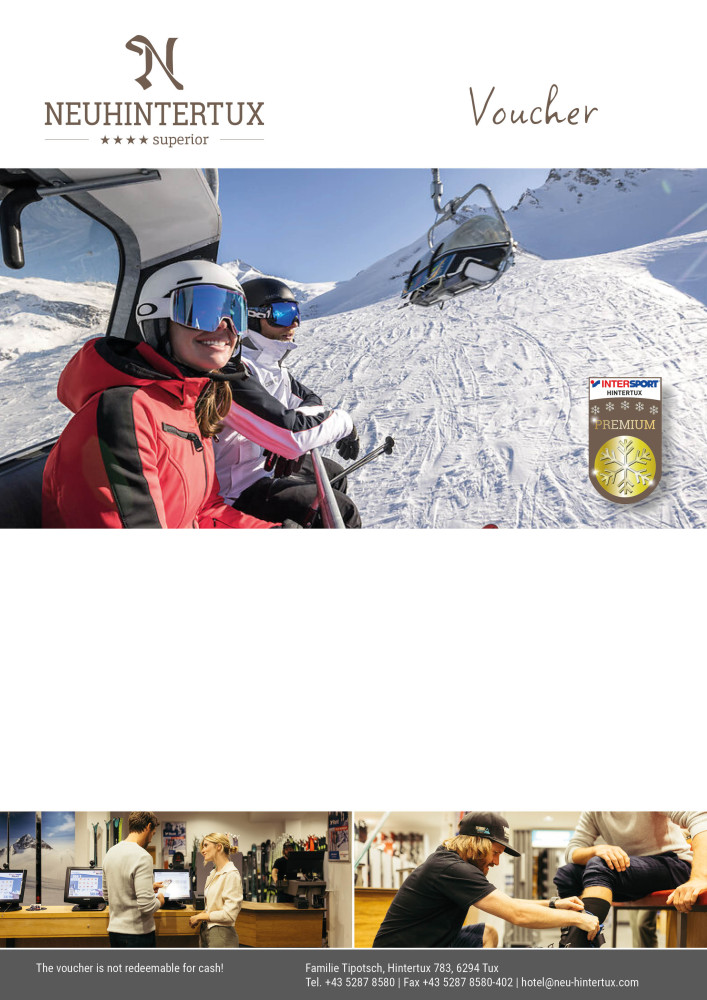 Leave the daily grind behind at the 4-star Hotel Neuhintertux amidst the gorgeous mountain scenery of the Zillertal Valley.<br>We wish you all the very best. Enjoy being pampered and have a break to remember!